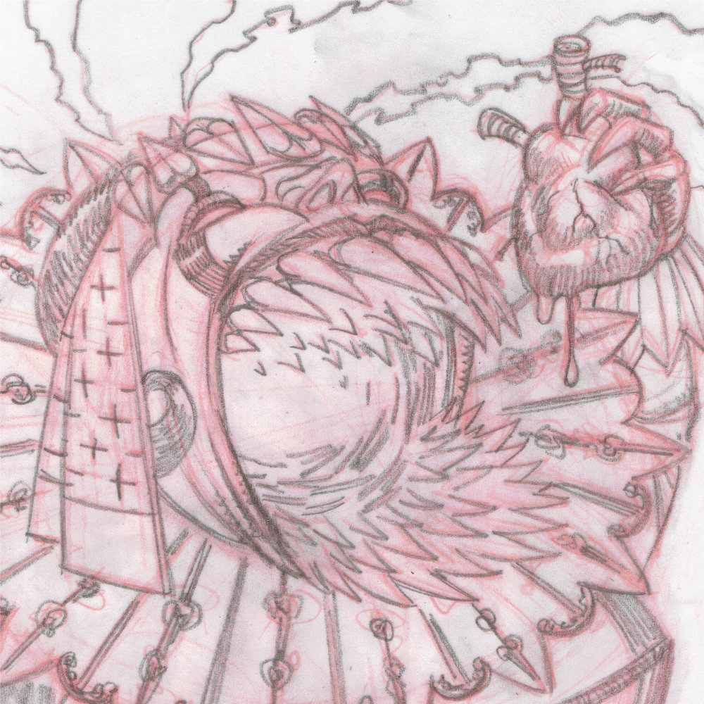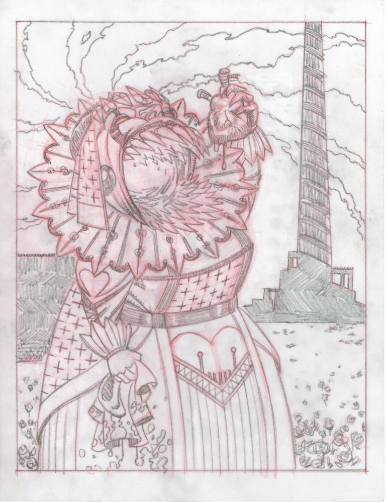 Preliminary sketch for one-of-five Alice in Wonderland-inspired images of infused with elements of horror author Stephen King.