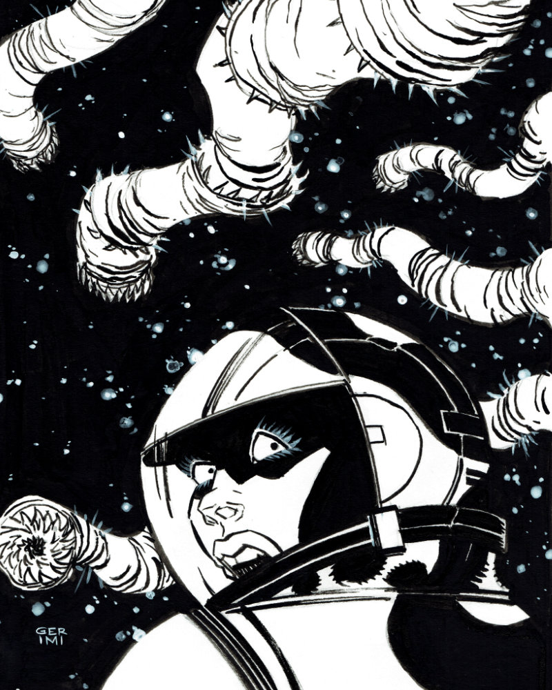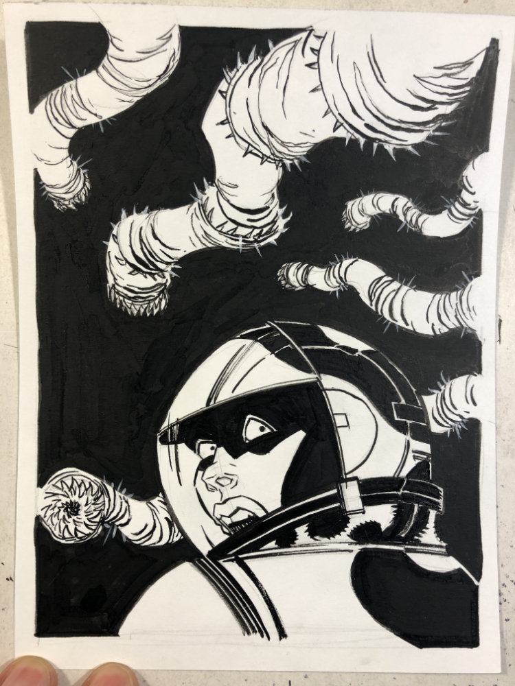 Albino leeches stalk this afrofuturist explorer, with tentacles sucking harder than the vacuum of space… TERROR!