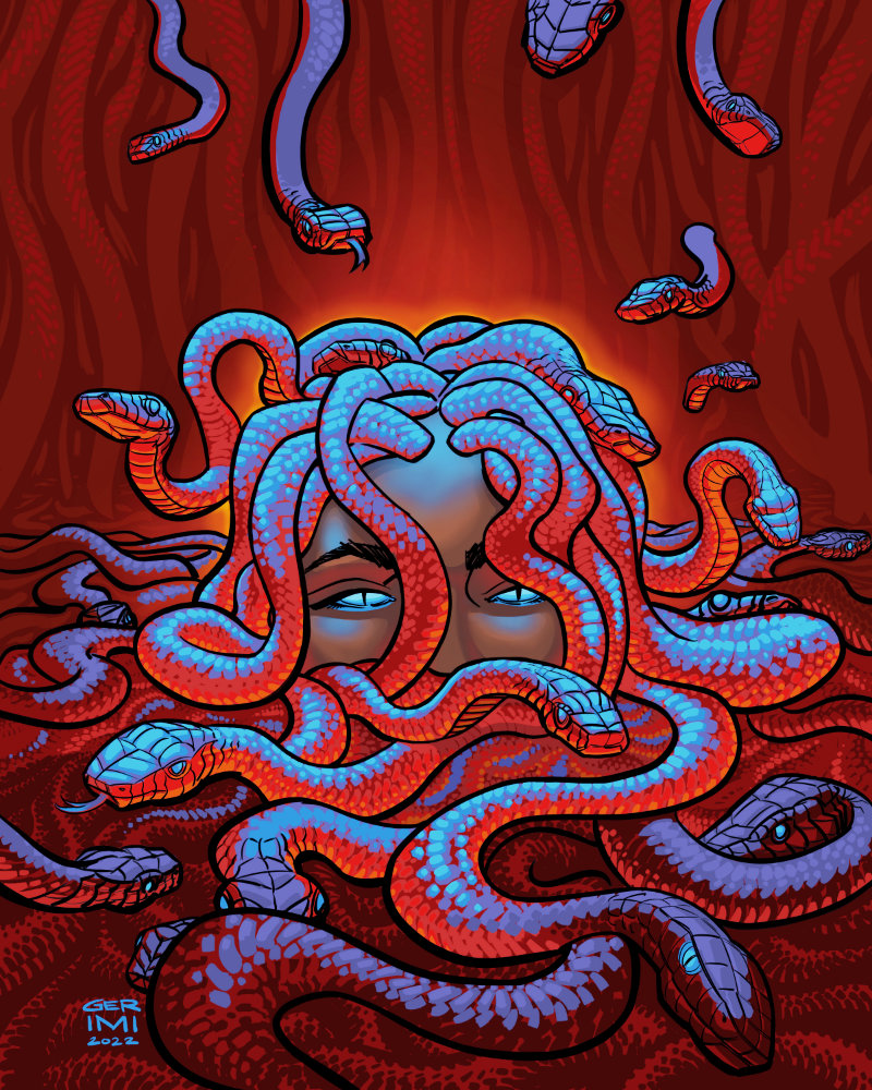 Gorgon Emerging - Red • Art Print
